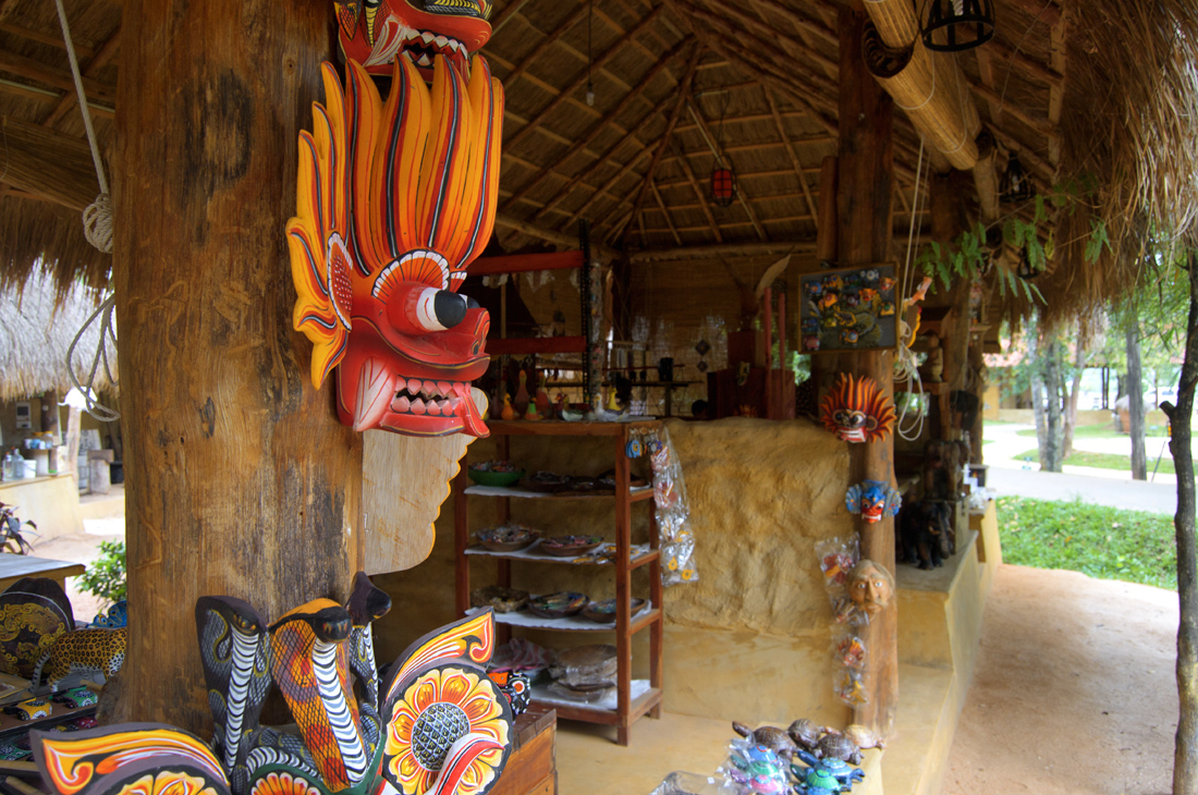 Around the village are many mud huts with straw-thatched roofs occupied by painted figurines of farmers and gardeners tending to patches of cinnamon, areca nut, gourd, or cloves. On Ape Gama grounds visitors can marvel at figurines of vegetable sellers, bullock carts, snake charmers and replicas of village essentials such as the “veebissa,” paddy storage. Other huts are occupied by real artisans, who elegantly produce Sri Lankan jewelry, batik cloth, woodcrafts, pottery, brassware and cane work from scratch, on site. Many of these handicrafts can be purchased at the Laksala, the state souvenir boutique store located on the premises.