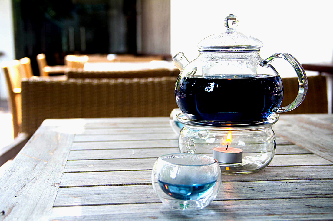 The star among all their tea beverages and flavours is their signature tea that is on the menu. We are so used to the dark scarlet coloured tea or the champagne coloured tea we usually drink. When their signature tea is served you are instantly mesmerised with the colour of the beverage. It is a hue of violet that you will see when you pour the freshly brewed tea. The glass teapot heated on top of a miniature candle is a pleasant sight and the taste is very mellow as well. The attractive colour is created by infusing butterfly pea flowers also known as Katarolu among the locals, with premium Ceylon tea. The flowers are used as herbs and it is said the flowers contain medicinal properties to boost memory and cognitive function.